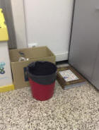 toplantı yapıyoruz. Bir ara gözüm dolabın önündeki çöpün yanında yatmakta